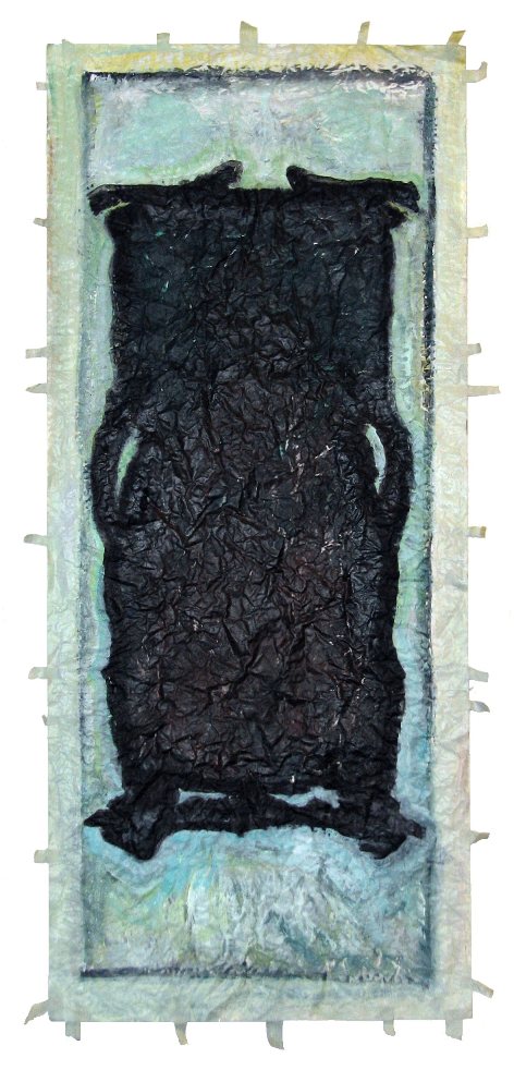acrylic on stitched paper, 14" x 32" (36cm x 80cm)